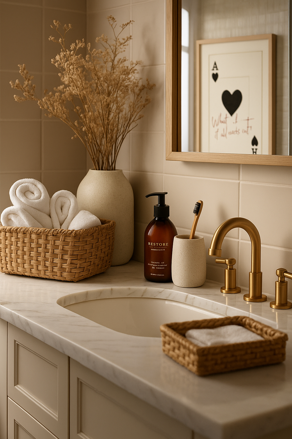 Plush towels, chic accessories, and everyday essentials — everything your bathroom needs, styled with ease.