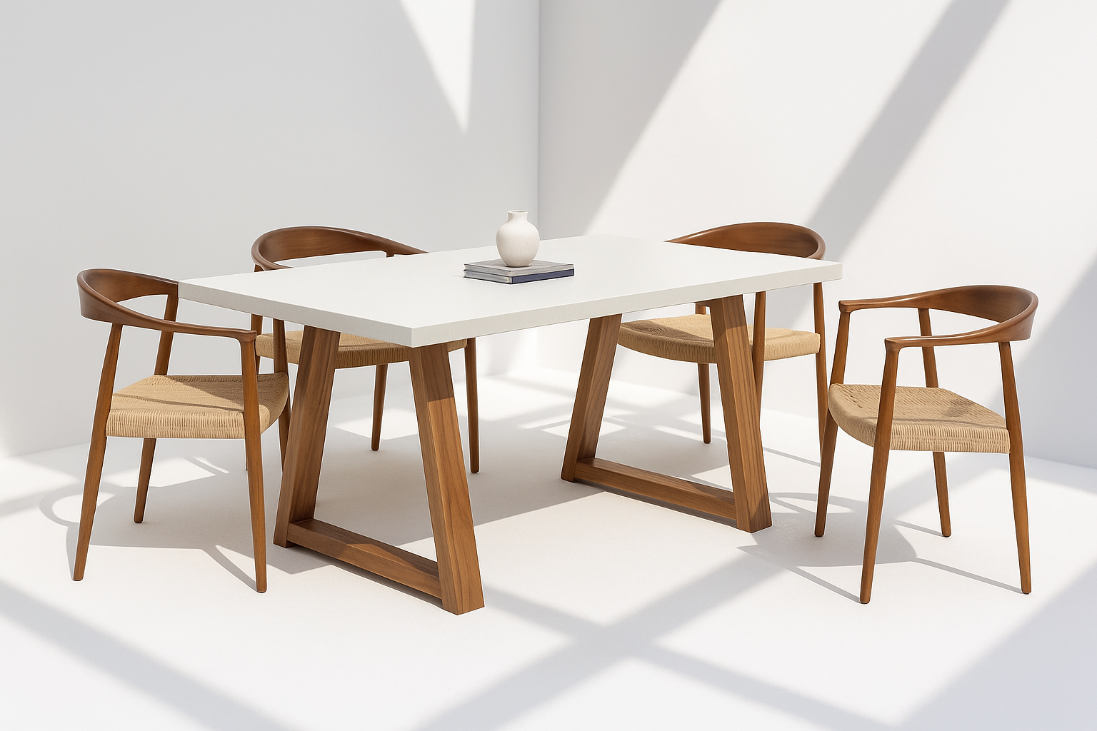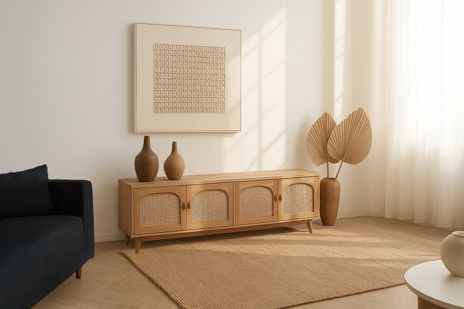 With pieces in soft oak, woven cane, ceramic, and stonewashed linen, Sol is rooted in clean lines and earthy tones — brought to life through thoughtful layers of wood, fiber, and shadow. From the rounded warmth of your coffee table to the sculptural curve of your dining chairs, every element is designed to bring both form and feeling into balance.